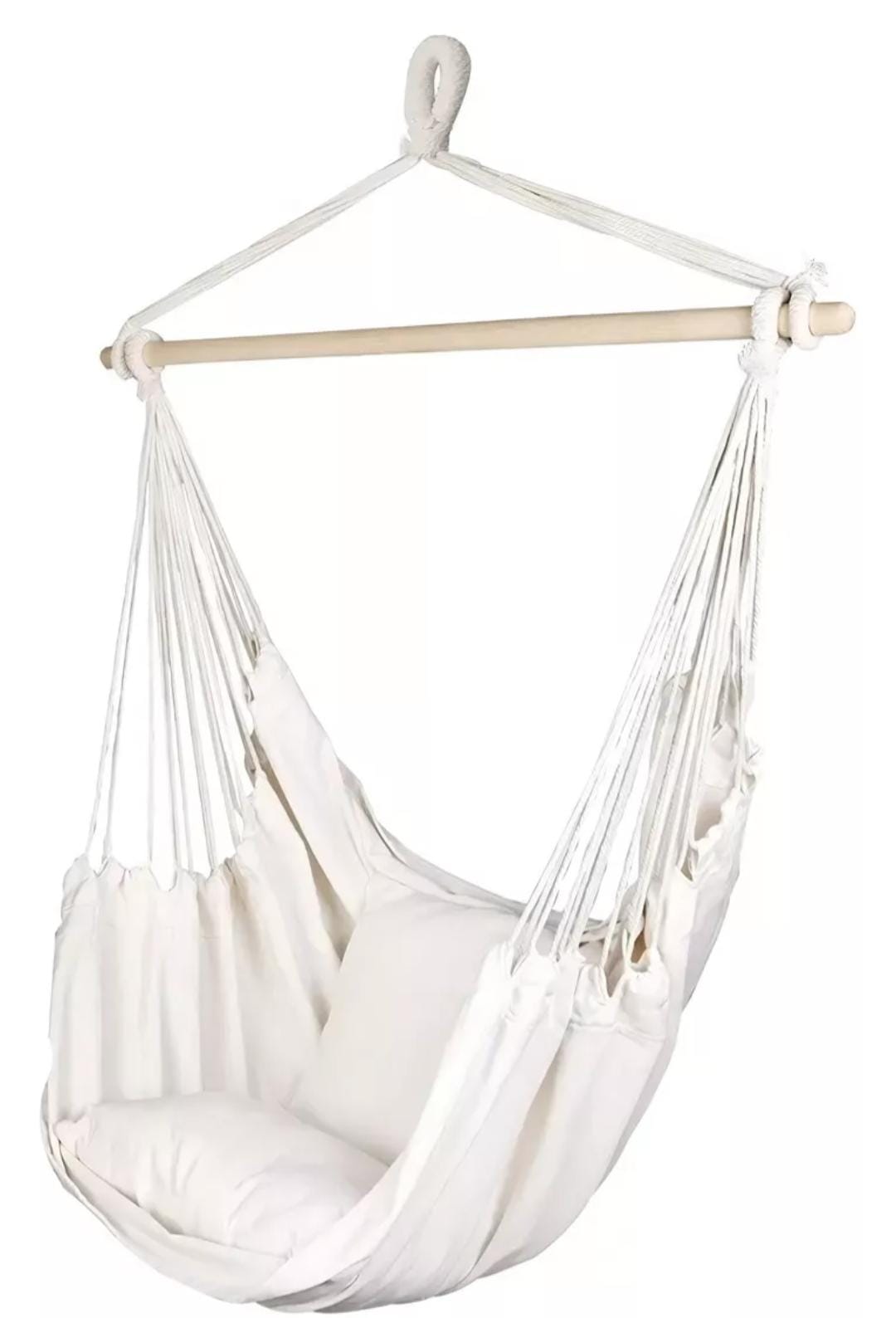 Silla Hamaca Colgante Camping Interior y Exterior Con Palo BLANCA